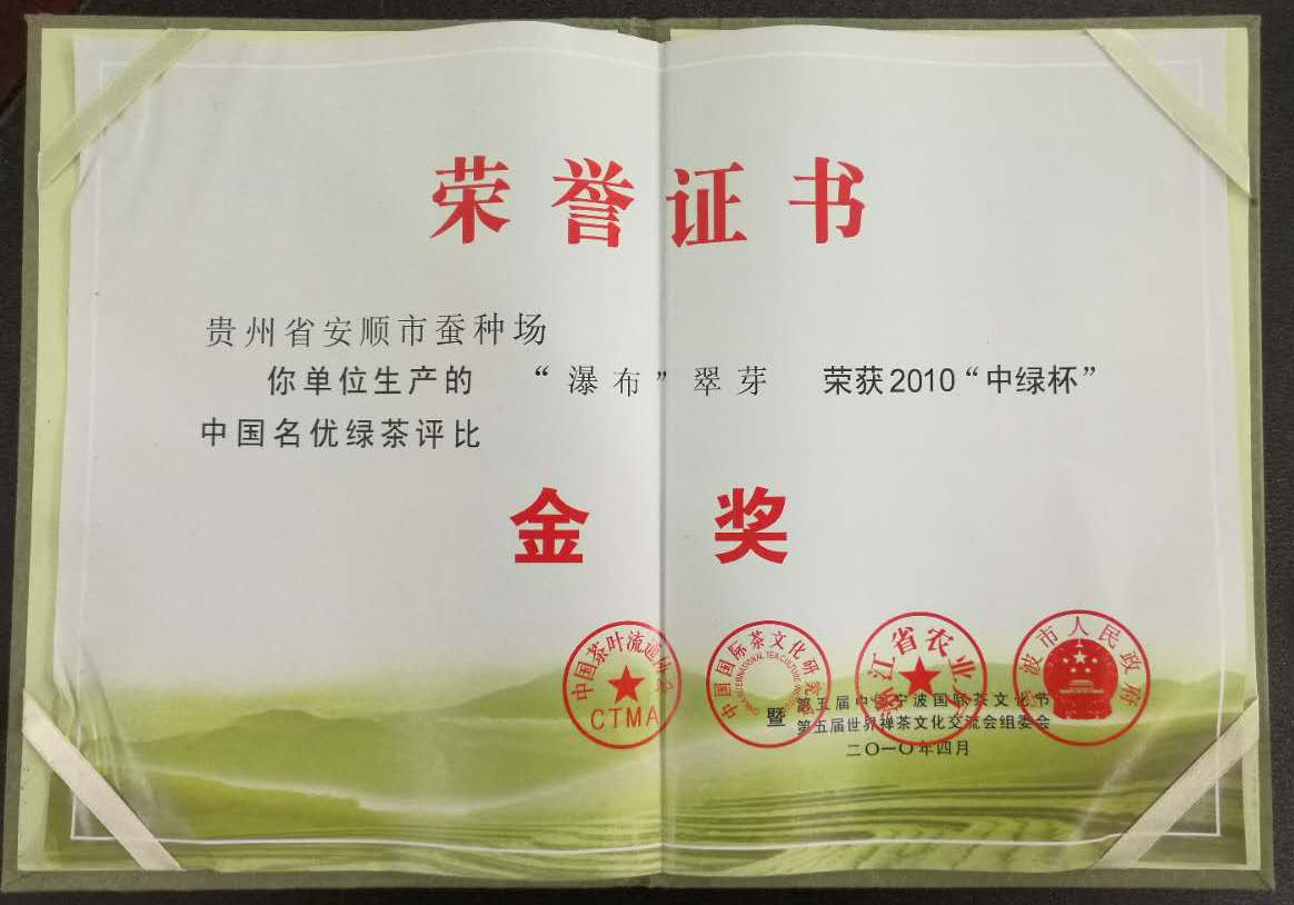 “瀑布”翠芽榮獲2010“中綠杯”中國名優綠茶評比金獎