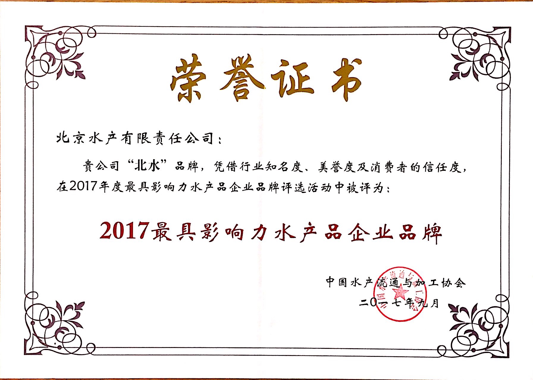 發證機構:   中國水產流通與加工協會 發證時間 :   2017-09-08