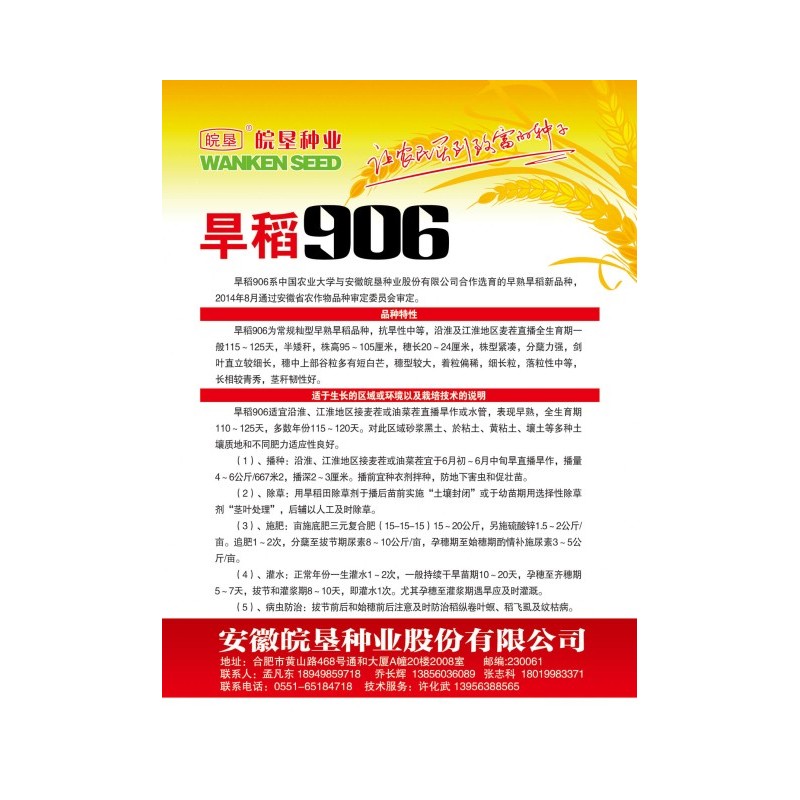 【風險提示】:種子應儲藏在低溫(25℃以下)、干燥(相對濕度70%以下)及通風處;種子調運后及時做好防潮、防濕、防蟲、防鼠等工作并在上述條件下進行儲藏,做到在安全儲藏條件下、質量保證期內規范安全用種;請遵照當地農技部門做好科學栽培,做好稻瘟病、稻曲病、紋枯病、白葉枯、條紋葉枯病、黑條矮縮病、螟蟲、稻飛虱等病蟲害的綜合防治工作,由于栽培措施不當和病蟲害及氣候等因素造成的一切損失責任自負;按審定適宜種植區域種植,超區域銷售或種植造成的損失責任自負,公司概不負責;根據種植季節結合當地合理安排播期,規避因高低溫、風暴倒伏等人為不可抗逆因素造成的損失。
