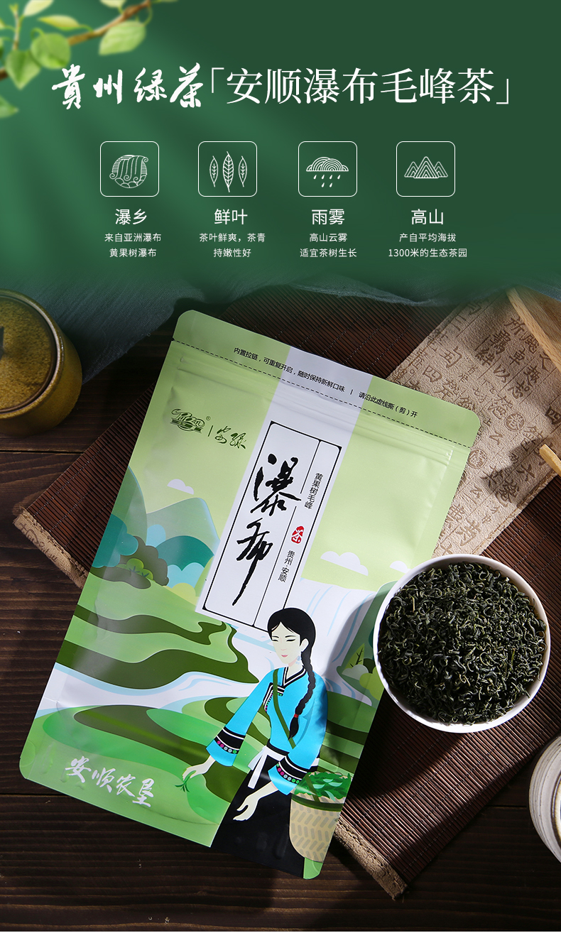 瀑布茶品牌是安順市人民政府主打茶葉品牌,省級重點打造區(qū)域公共品牌,屬貴州五大名茶,先后獲得獲“中國農(nóng)產(chǎn)品區(qū)域公用品牌”、“貴州省著名商標(biāo)”、“貴州省名牌產(chǎn)品”等榮譽稱號。近年來,在各級部門大力推動下,瀑布茶品牌不斷發(fā)展壯大。截止目前,現(xiàn)有瀑布茶品牌加盟企業(yè)23家,輻射茶園面積200000余畝,其中綠色食品認(rèn)證茶園基地面積7000余畝,有機食品認(rèn)證基地面積2500畝。擁有“瀑布毛峰”、“瀑布翠芽”、“瀑布紅茶”、“瀑布翠龍”等產(chǎn)品,多次獲得“中綠杯”、“中茶杯”、“華茗杯”等大獎;分別榮獲第14屆中國國際農(nóng)產(chǎn)品交易會金獎、第18屆中國綠色食品博覽會金獎、“黃山杯”首屆全國傳統(tǒng)名茶產(chǎn)品質(zhì)量特別金獎、安順十大旅游商品等殊榮及稱號。