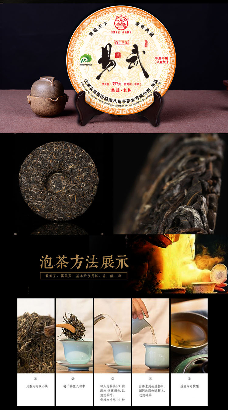 云墾茶業(yè)集團下屬茶葉生產企業(yè)——云南農墾集團勐海八角亭茶業(yè)有限公司原名黎明茶廠,是我國歷史最為悠久的茶企之一,曾位列“中國普洱茶十大知名品牌”“十大最受歡迎茶葉品牌”、“中國普洱茶十大暢銷品牌”中,成為今天市場上最有影響力的品牌之一。公司產品獲得“綠色食品”、ISO9001、 HACCP和云茶品牌(YC)4項認證,連續(xù)獲得“云南名牌農產品”“云南名牌產品”“云南省著名商標”等品牌榮譽,公司生產的多款普洱茶在歷次專業(yè)評比中多次獲得特等金獎和金獎。在2018第五屆中國企業(yè)五星品牌論壇上,云南農墾集團勐海八角亭茶業(yè)有限公司上榜中國普洱茶行業(yè)影響力品牌——“金芽獎”,公司負責人陳勝軍先生獲“陸羽獎”,被授予2017“國際十大杰出茶人”榮譽稱號。