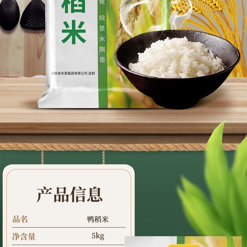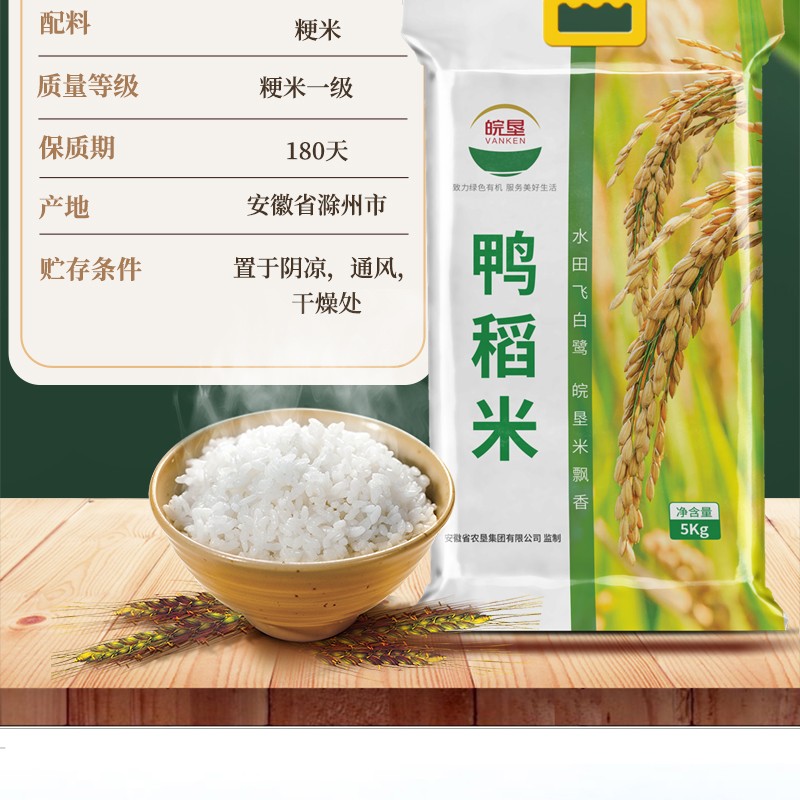 皖墾鴨稻米大米5kg新米圓粒珍珠米粳米生態(tài)鴨田稻米真空包裝