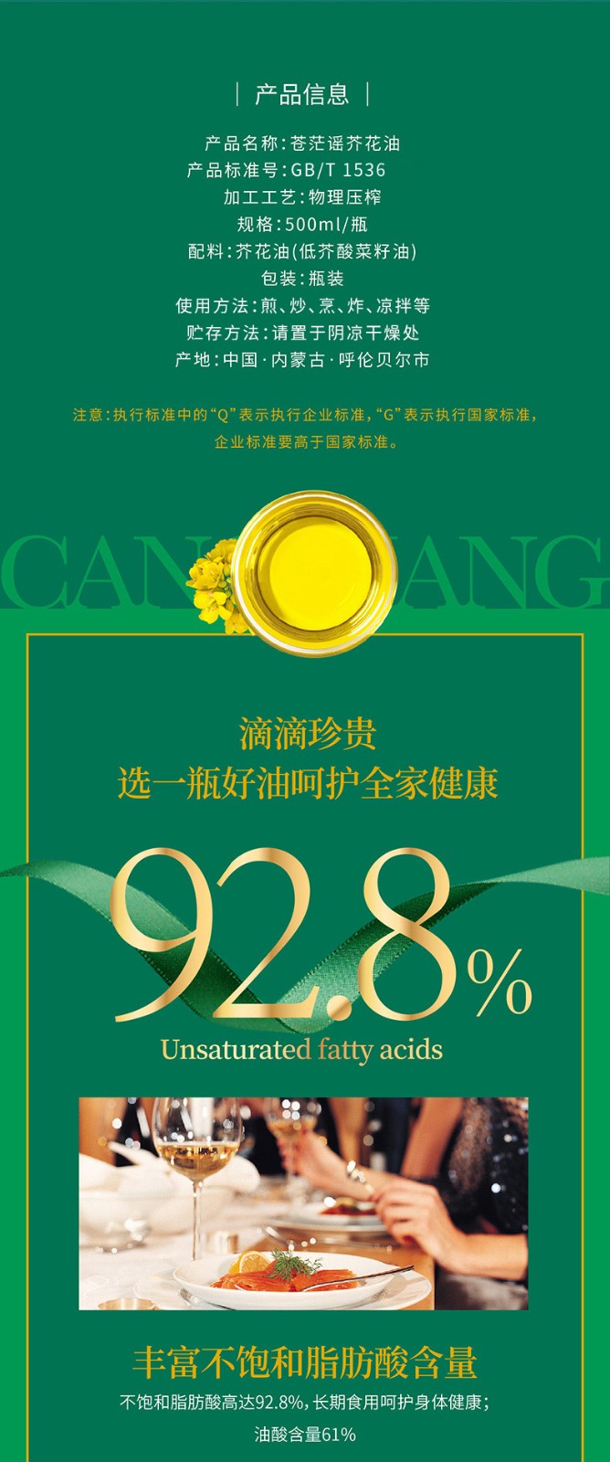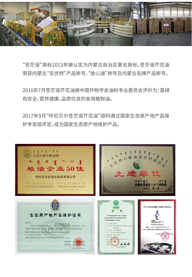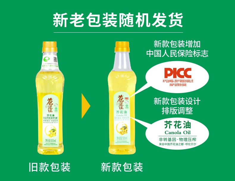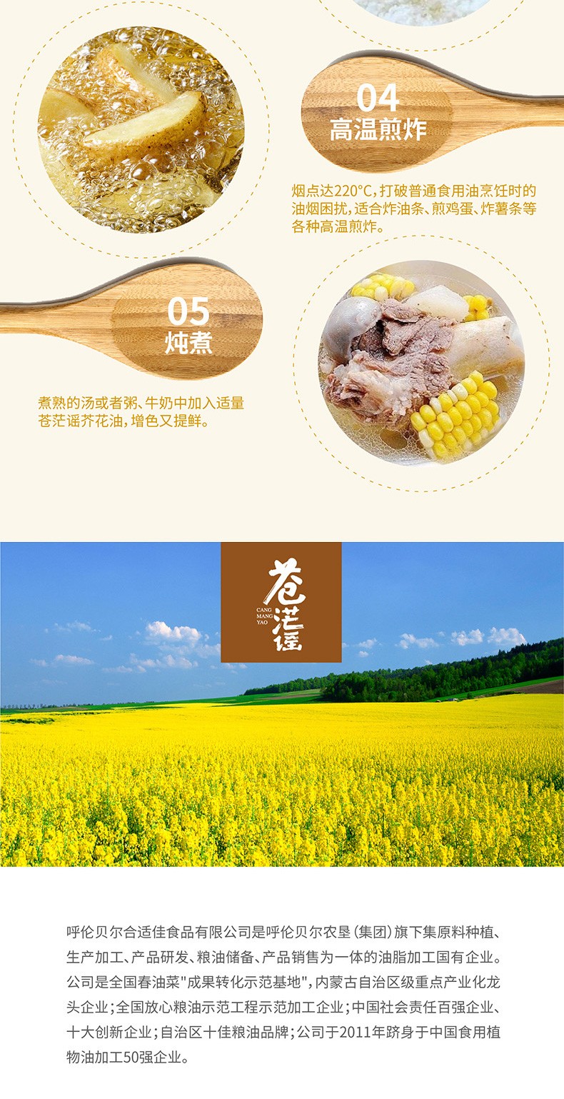 呼倫貝爾農墾出品蒼茫謠芥花油非轉基因食用油500ml*6